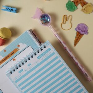 2️⃣ بلانر يومية بأبعاد (12*17) سم و عبارة عن 50 صفحة، يحتوي على أقسام متعددة بتساعدك في تنظيم يومك. كمان أهتمينا جدًا بالجانب النفسي والسعادة الشخصية وإنك تكوني مرتاحة وعارفة ازاي تستفيدي بكل لحظة في يومك. 😍🎼🧖‍♀️🧘🏻‍♀️