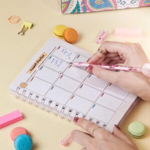 1️⃣ جورنال المصروفات، مقاسها ( 12*17 ) و عبارة عن 60 صفحة ( صفحة شهرية + 4 صفحات أسبوعية) هيساعدك في تخطيط وتظبيط مصاريف الشهر والأسبوع.